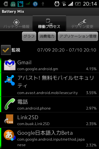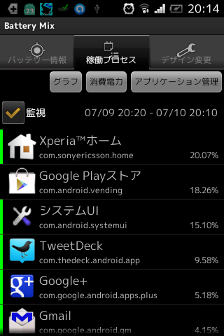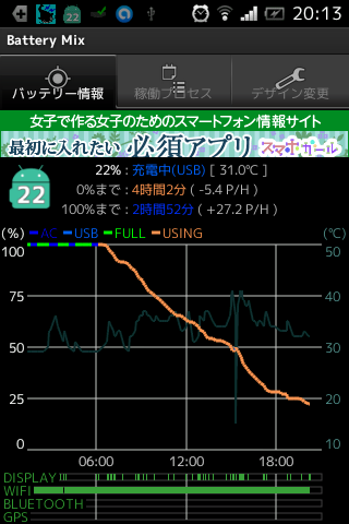 Wifi利用ONのままでのバッテリー消費具合。ちょっと速いですね。